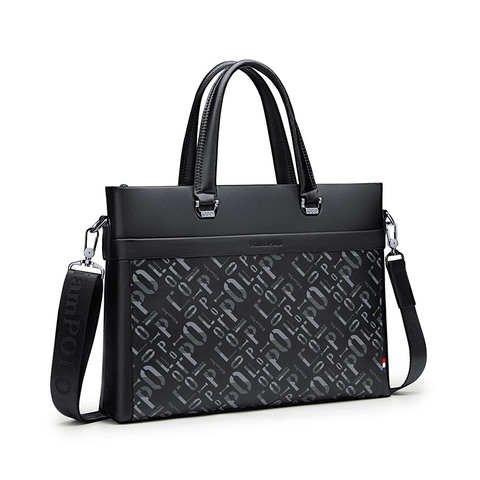 William POLO Men's Genuine Cowhide Leather Laptop Briefcase Fashion Office Shoulder Handbag Chic Computer Bag