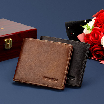 William POLO 2024 Brown Vintage Men's Bifold Genuine Leather Wallet Short RFID Feature Open Closure Type PVC Gift Western Purse